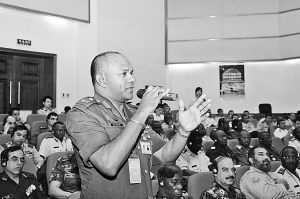 伊魯納貝爾·翁貝·迪克上校(尼日利亞):應(yīng)對非傳統(tǒng)安全威脅,軍隊面臨許多挑戰(zhàn),包括確定相應(yīng)的用兵等級、缺乏必要的訓(xùn)練、人力不足、缺乏統(tǒng)一行動、不理想的媒體關(guān)系等。在國家一級,應(yīng)制定和清晰闡述應(yīng)對非傳統(tǒng)安全威脅的戰(zhàn)略。軍隊被用以應(yīng)對非傳統(tǒng)安全威脅時應(yīng)當(dāng)使用少量必要的兵力,應(yīng)在國家安全的大局下行動。把應(yīng)對非傳統(tǒng)安全威脅技能的訓(xùn)練放在軍隊訓(xùn)練中的重要地位。